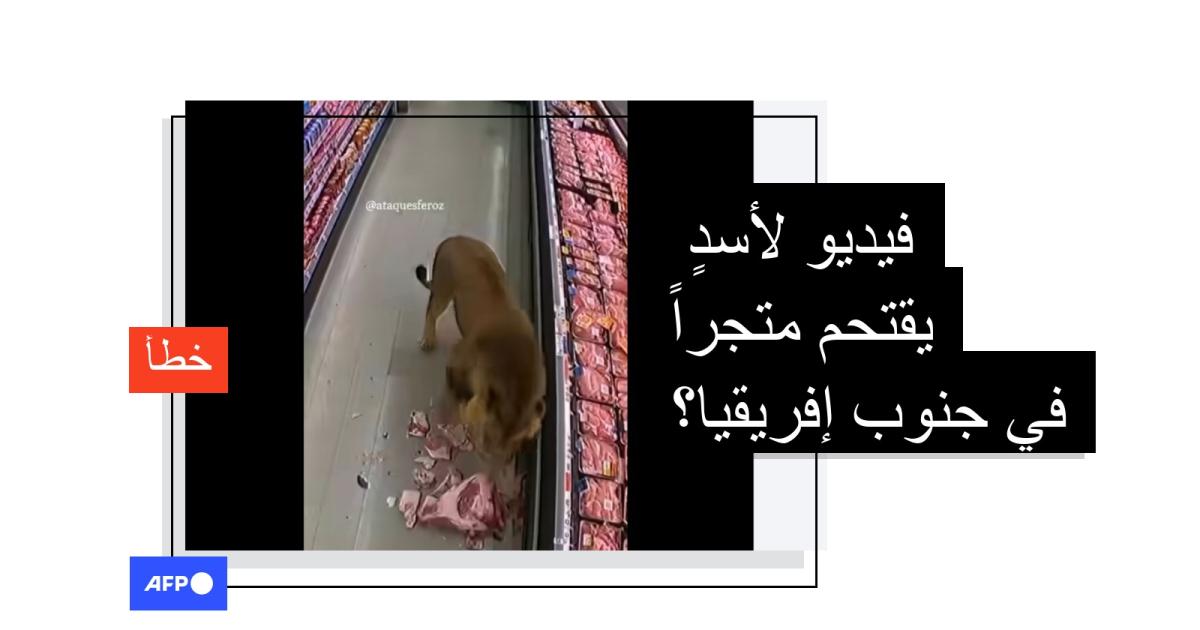 يظهر الفيديو ما يبدو أنّه أسد داخل متجرٍ يأكل اللحوم. وجاء في التعليق المرافق "أسد يقتحم سوبر ماركت في جنوب إفريقيا".
