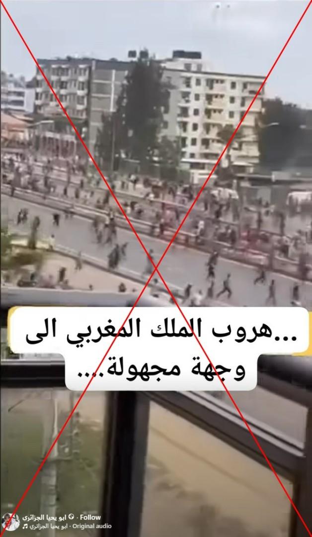 يظهر الفيديو حشداً من الناس يركضون في الشارع وجاء في التعليق المرافق له "هروب الملك المغربي إلى وجهة مجهولة".