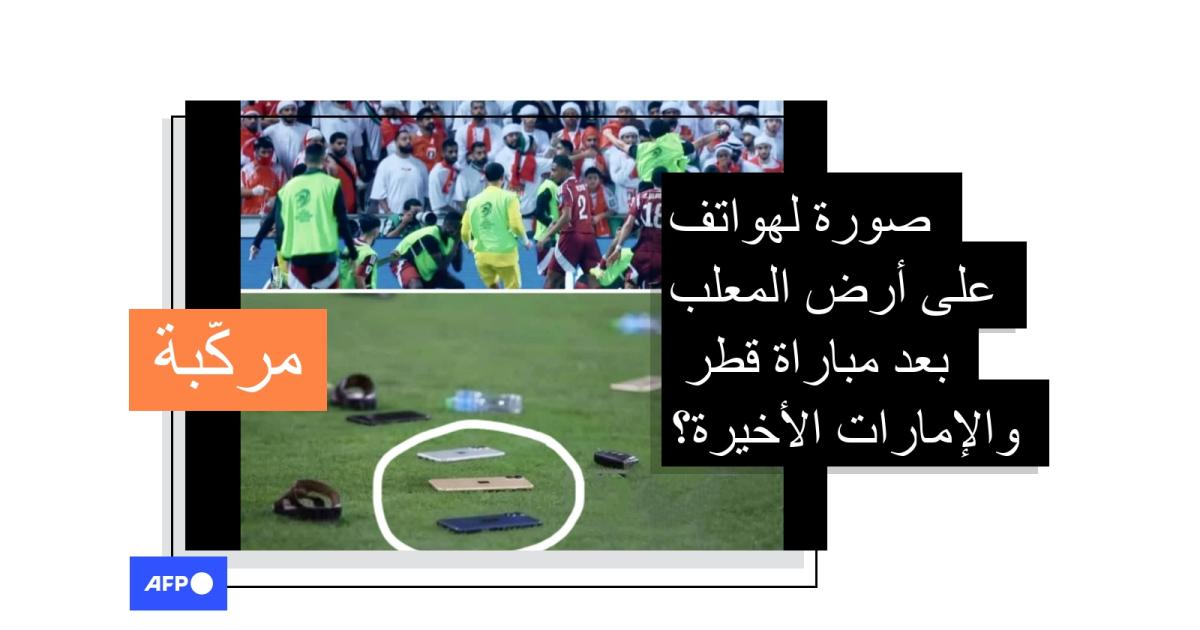 مع تأهل قطر للمرة الأولى في تاريخها عبر التصفيات الى كأس العالم لكرة القدم، بعد تغلبها على الإمارات 2-1 في الدوحة، انتشرت صورة عبر مواقع التواصل الاجتماعي زعم ناشروها أنّها لهواتف ومقتنيات رُميت على أرض الملعب بعد خسارة الإمارات. إلا أن الصورة مركّبة والنسخة الأصليّة منها تعود لعام 2019.