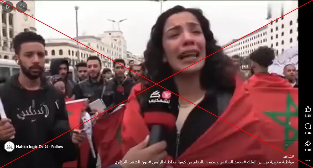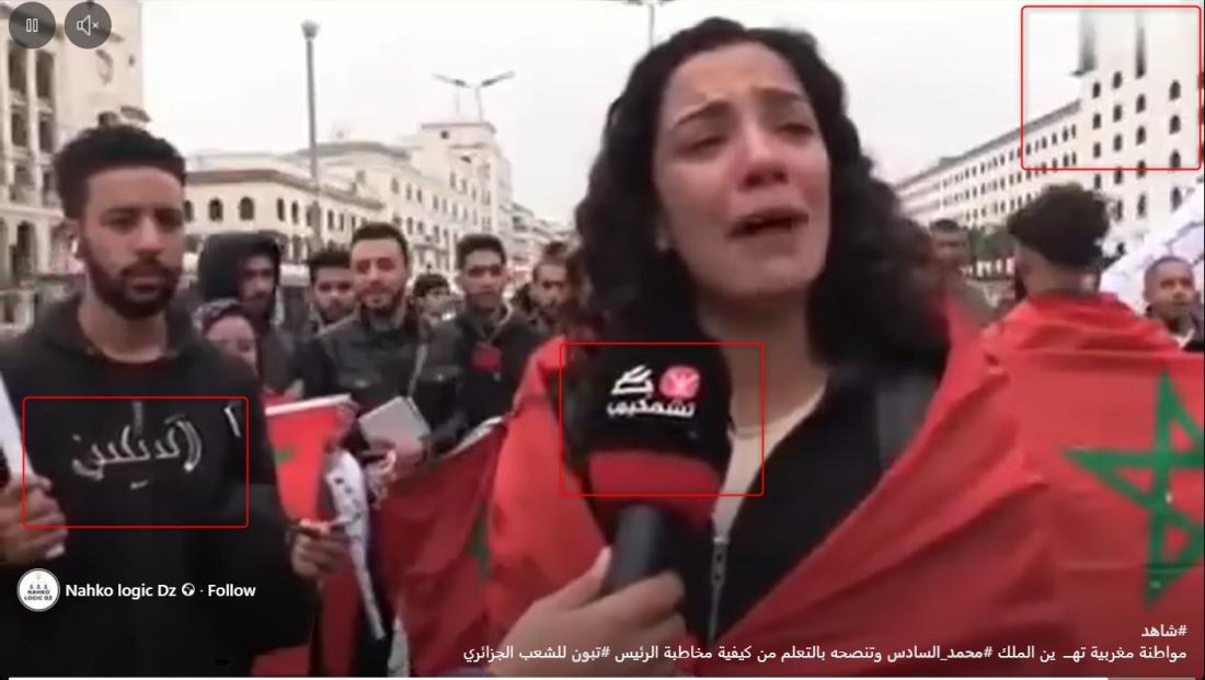 يظهر الفيديو سيّدة تتحدث إلى الإعلام موجهة انتقادات للملك المغربي وسط تظاهرة حاشدة، وعُلّق على الفيديو المنشور بالقول "مواطنة مغربية تهين الملك وتنصحه بالتعلم من الرئيس الجزائري".