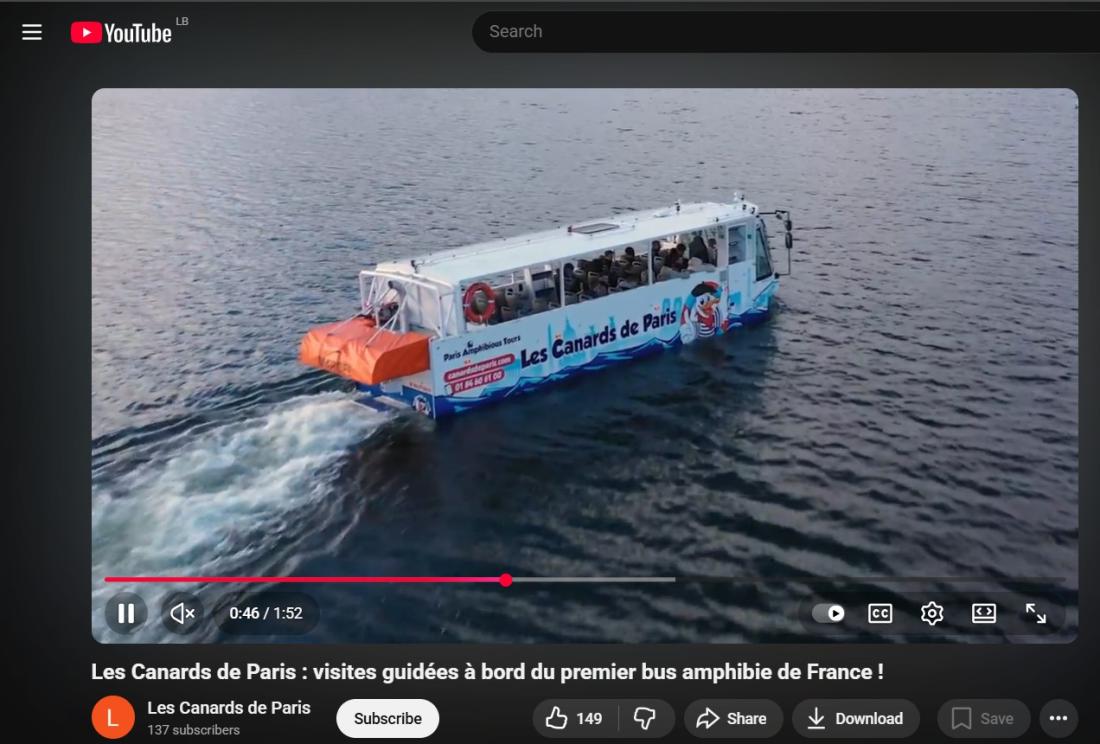 أمّا المركبة البيضاء والزرقاء التي تحمل عبارة les canards de Paris فهي فرنسيّة والمشهد منشور عام 2021. (أرشيف)