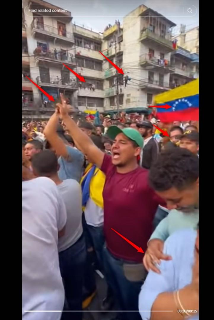 يظهر الفيديو جمعاً من المتظاهرين بعضهم يحمل الأعلام الفنزوليّة وبعضهم يبكي ويصرخ.