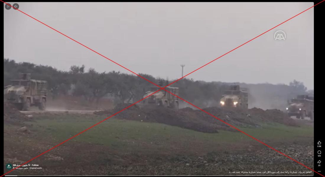إلا أنّ الفيديو المتداول لا يظهر تعزيزات عسكريّة تركيّة في سوريا.