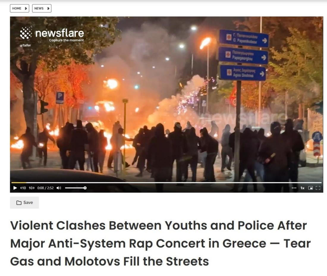 وبحسب هذه المواقع اندلعت الاشتباكات في الأول من تشرين الثاني/نوفمبر 2025 في تيسالونيكي بعد انتهاء حفل موسيقي لمغني راب شهير.