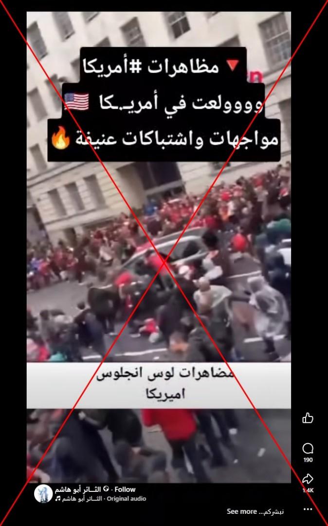 أثار مقتل امرأة أميركية في مدينة مينيابوليس في السابع من كانون الثاني/يناير برصاص عنصر من شرطة الهجرة احتجاجات كبيرة وتوتراً مع سلطات إنفاذ القانون الأميركيّة الفدرالية. في هذا السياق، تداول مستخدمون لمواقع التواصل الاجتماعي فيديو زعم ناشروه أنّه لمواجهات واشتباكات عنيفة بين المتظاهرين والشرطة هناك. إلا أنّ الفيديو في الحقيقة يصوّر حادثة دهسٍ خلال احتفال لجمهور نادي ليفربول بتتويج فريقهم بطلاً للدوري الإنكليزي لكرة القدم عام 2025.