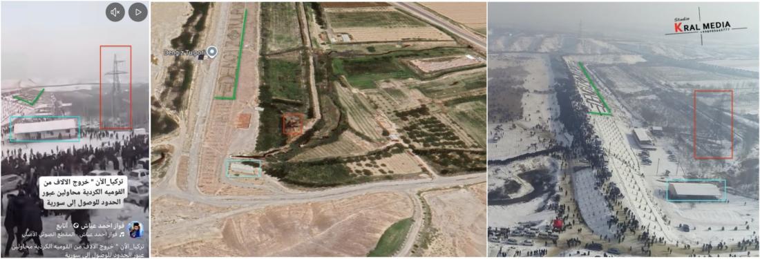 يظهر الفيديو آلاف الأشخاص يتحرّكون في منطقة جبليّة محاطة بالثلوج. وجاء في التعليق المرافق "تركيا الآن: آلاف الأكراد يحاولون عبور الحدود للدفاع عن أكراد سوريا".