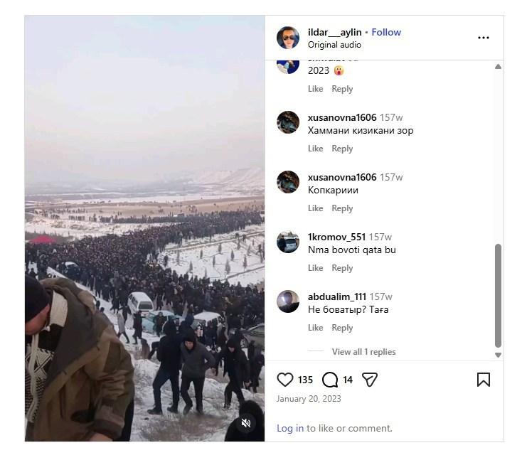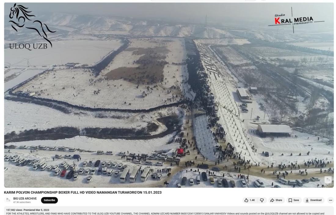 ويمكن ملاحظة تعليقات على الفيديو باللغة الكازاخستانيّة من بينها ردٌ لصاحب الحساب على أحد متابعيه يشير إلى Kok-Borou وهي منافسة تقليديّة للخيول شائعة في دول آسيا الوسطى مثل أوزبكستان وأفغانستان وتعرف بأسماء أخرى مثل Buzkashi أو Ulak-kupkari.