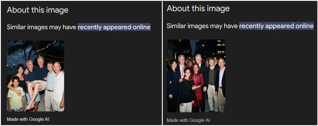 وبالتفتيش عن الصور المزعومة لممداني مع إبستين عبر محرّك غوغل، يظهر أنّها مولّدة باستخدام أدوات الذكاء الاصطناعي التابعة للشركة.