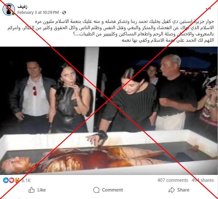 وجاء في التعليق المرافق لها "حوار فوق جثة في جزيرة إبستين".