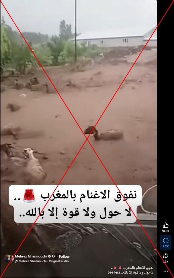 إلا أنّ الفيديو الذي يُظهر سيولاً تجرف المواشي لا علاقة له بالمغرب.