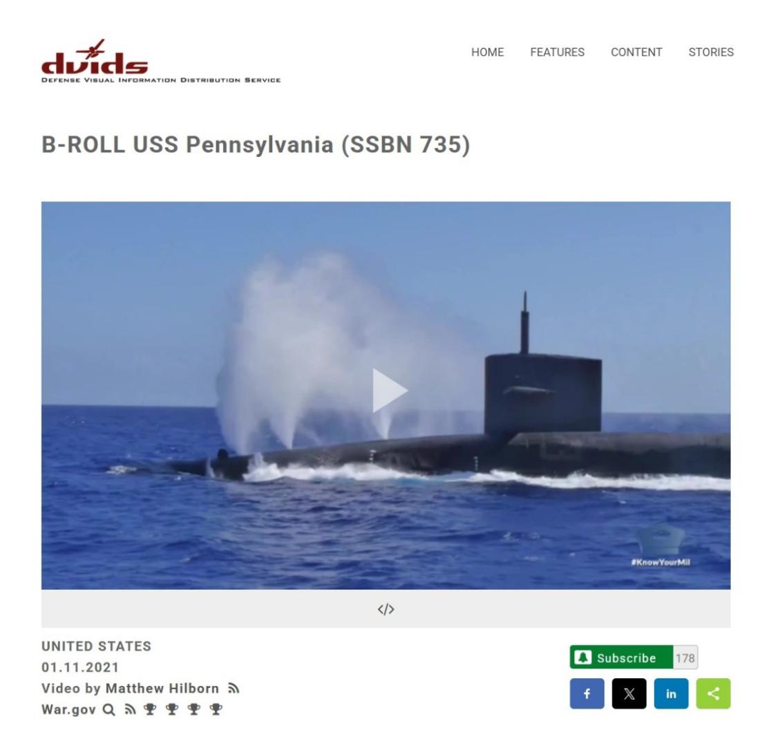 يظهر التفتيش عن لقطات من الفيديو في محرّك غوغل أنّه منشور في 1 تشرين الثاني/نوفمبر 2021 في موقع "dvids" وهو موقع رسمي أميركيّ يعنى بتوزيع المواد البصريّة المرتبطة بالشؤون العسكريّة. (أرشيف 1-2)