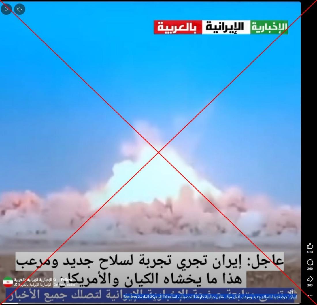 حذّرت إيران في 23 شباط/فبراير من أنها ستعتبر أي هجوم أميركي، وإن كان بضربات محدودة، "عدواناً" عليها يستوجب الرد. في هذا السياق تداول مستخدمون لمواقع التواصل الاجتماعي فيديو زعم ناشروه أنه لتجربة سلاح جديد في إيران استعداداً للمواجهة. إلا أن الفيديو في الحقيقة يعود لمشهدٍ من اختبار قنبلة تركية بُثّ خلال معرض للصناعات العسكريّة في إسطنبول عام 2025.