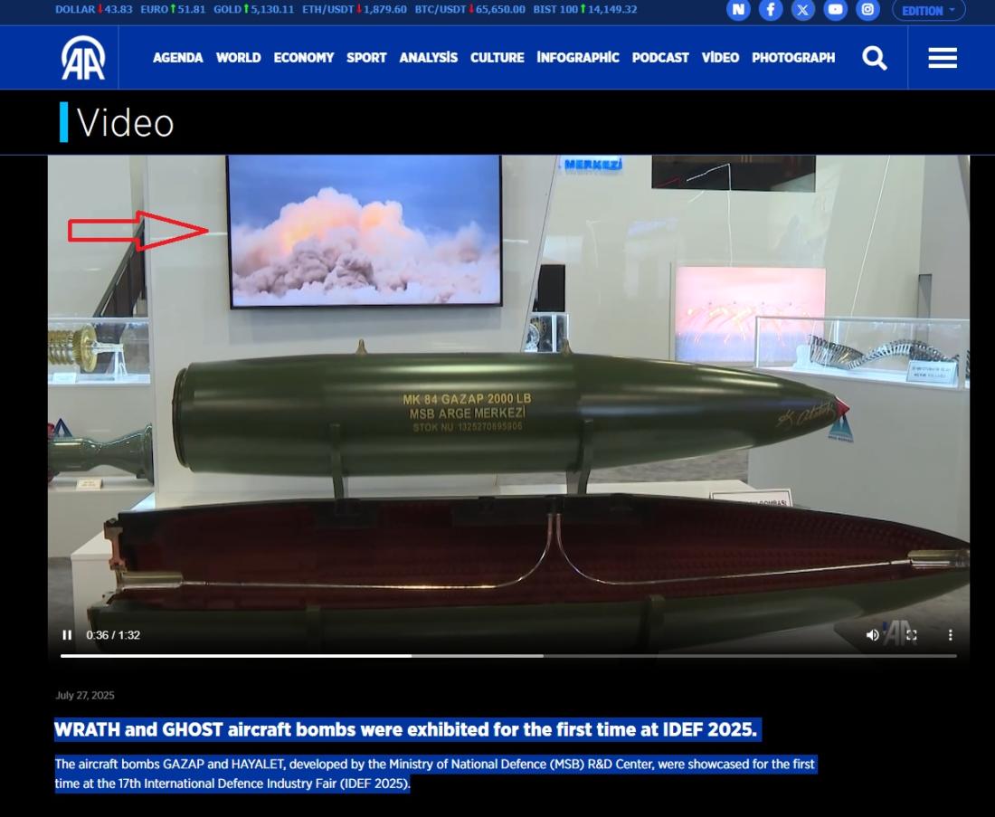 وأقيم هذا المعرض في مدينة إسطنبول في 22 تموز/يوليو 2025 وعرضت خلاله أسلحة تركيّة من بينها قنبلة "GAZAP" التي تظهر في الفيديو المتداول. (أرشيف)