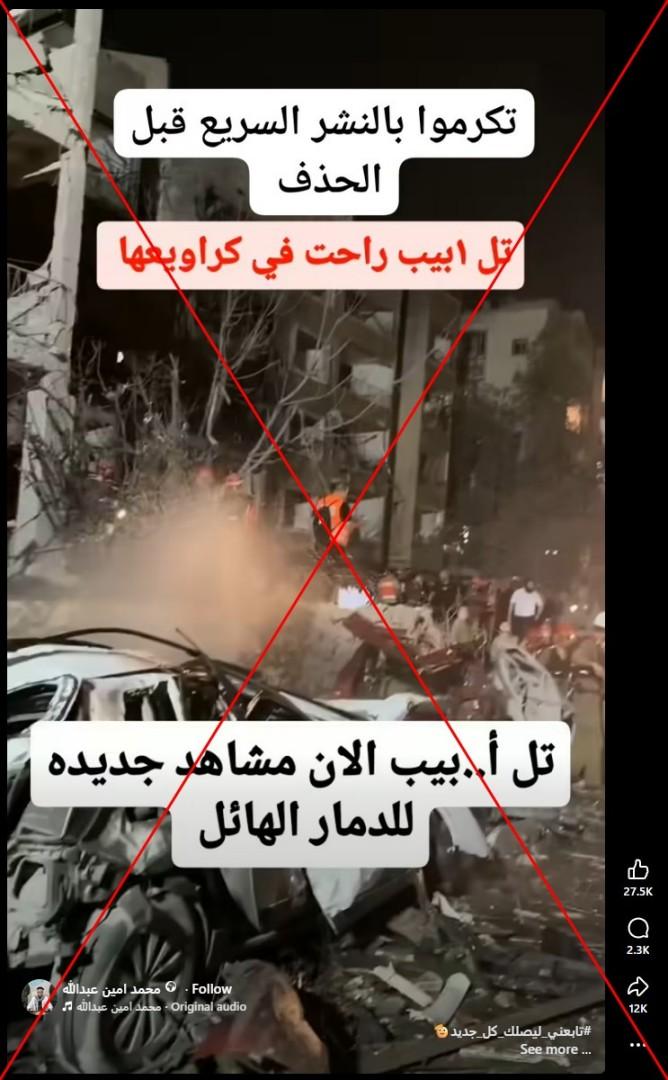 حصد المقطع آلاف المشاركات على مواقع التواصل الاجتماعي، وجاء في التعليق المرافق أنه لمشاهد جديدة للدمار في تل أبيب.
