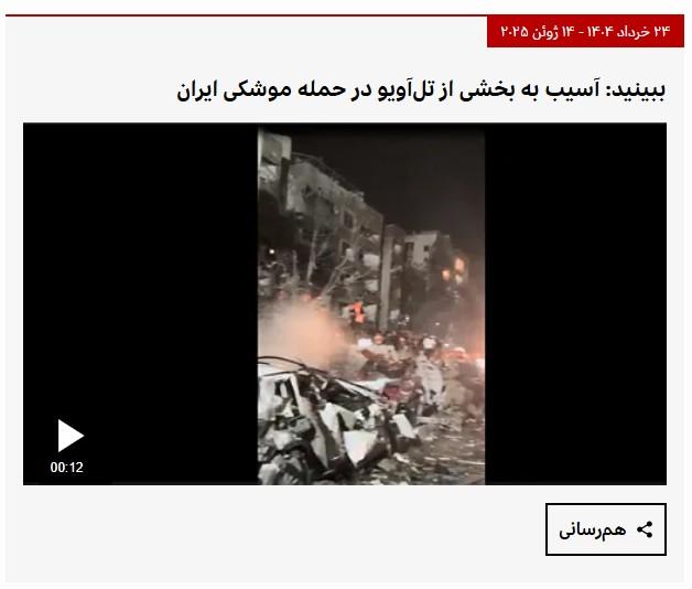 هذا الفيديو لدمارٍ في تل أبيب يعود لعام 2025 ولا علاقة له بالقصف الإيراني الأخير