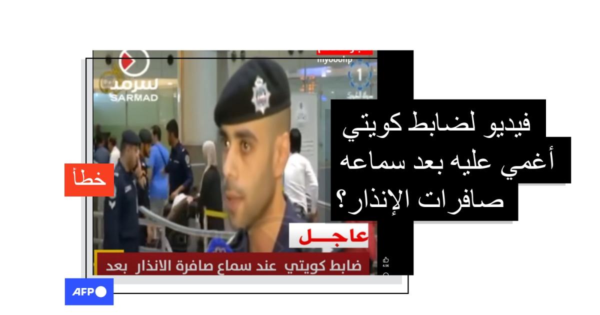 في ظلّ التوتر الذي يسود أجواء الكويت بعد تعرّضها لهجمات إيرانية نظراً لانتشار عدد كبير من القوات الأميركية على أراضيها، تداول مستخدمون لمواقع التواصل الاجتماعي فيديو زعم ناشروه أنّه لضابط كويتيّ أغمي عليه عند سماع صافرات الإنذار، إلا أنّ الفيديو في الحقيقة يعود لسقوط مسؤول أمن مطار الكويت خلال مقابلة تلفزيونيّة عام 2016 بسبب الإجهاد.