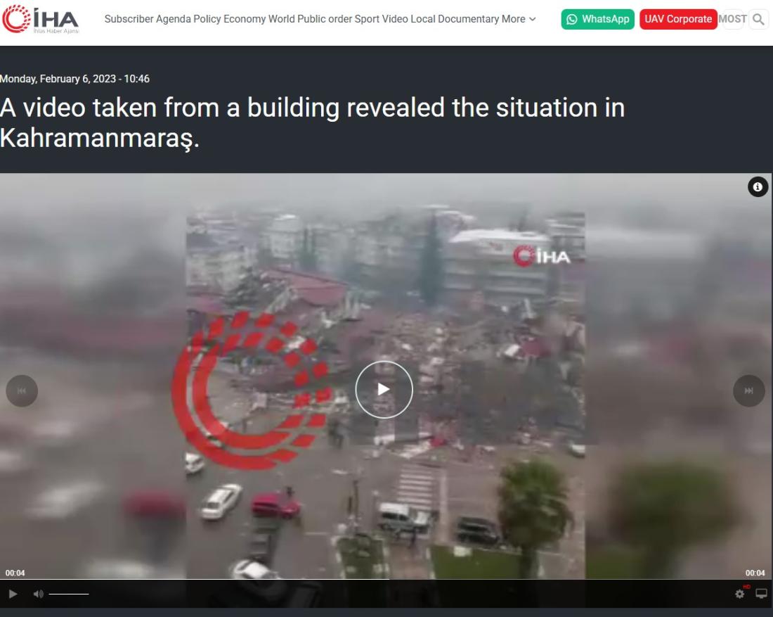 وجاء في الأخبار المرافقة له أنّه لزلزال ضرب منطقة كهرمان مرعش في تركيا، متسبّباً في انهيار العديد من المباني. (أرشيف)
