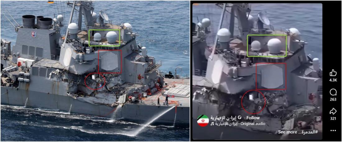 إلا أن الفيديو المتداول ليس لمدمّرة أميركيّة أصيبت خلال الحرب الحاليّة في الشرق الأوسط.