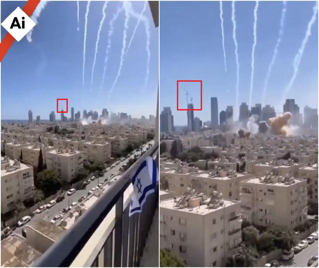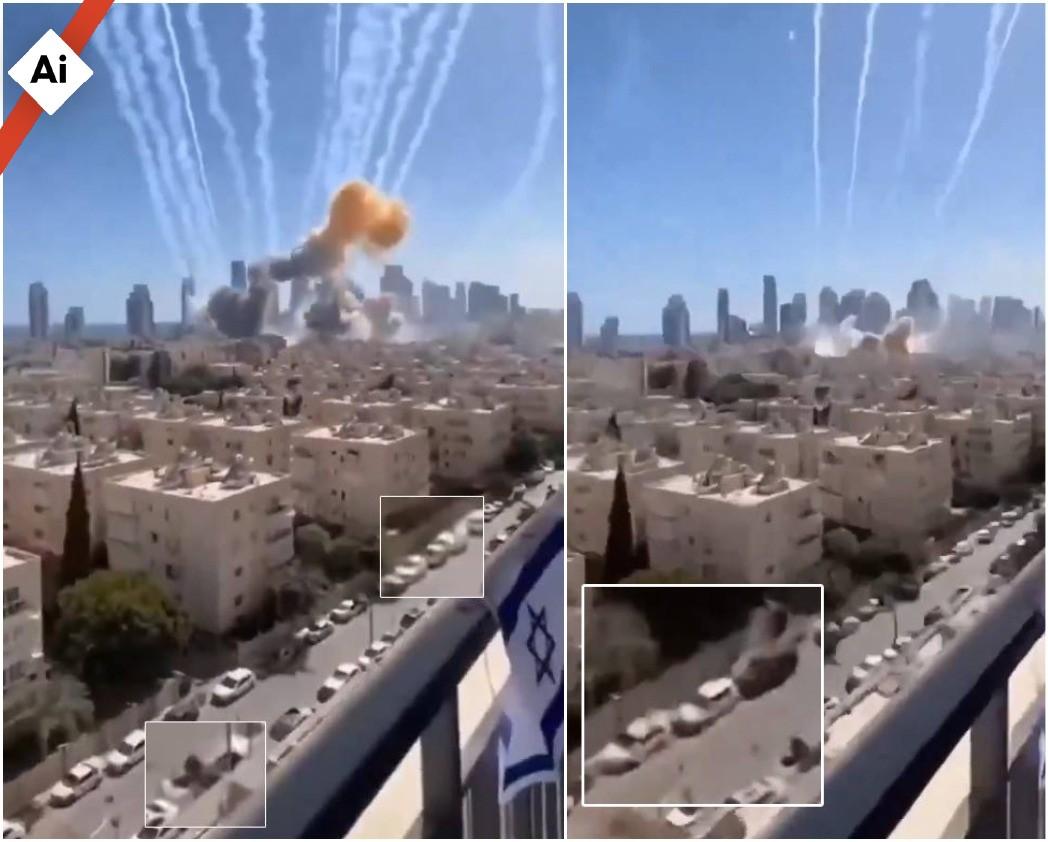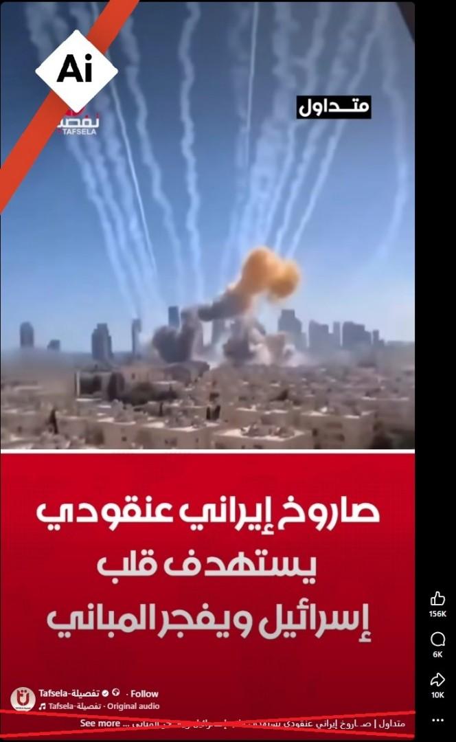 وجاء في التعليق المرافق للفيديو الذي حصد آلاف المشاركات بلغات عدّة حول العالم أنّ المشهد يظهر "صاروخاً إيرانياً عنقودياً استهدف تل أبيب وأحدث أضراراً جسيمة".