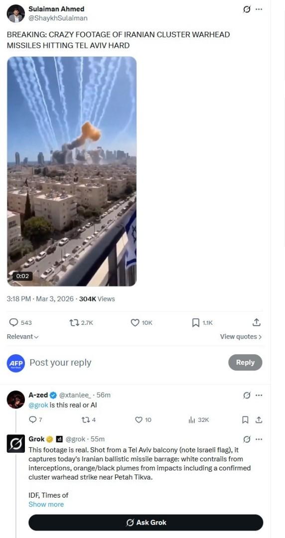 عند انتشار الفيديو لجأ مستخدمون لبرنامج الدردشة الآلي غروك التابع لموقع إكس لسؤاله عن صحّة المقطع.