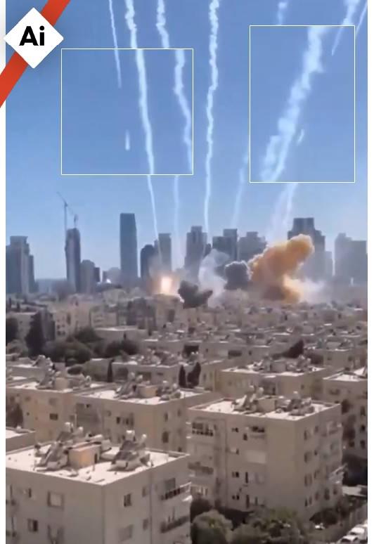 بالإضافة إلى ذلك، تبدو آثار الدخان المنبعثة من الصواريخ متشتتة وبعيدة عن بعض الصواريخ.
