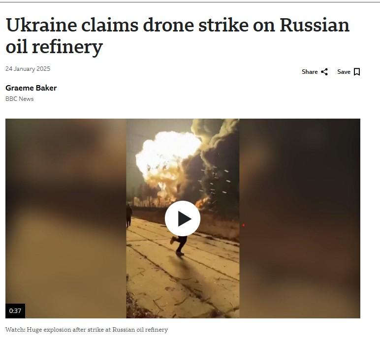 وجاء في الأخبار المرافقة للفيديو أنّه لحريق في مصفاة نفط في روسيا إثر استهدافها بمسيّرات أوكرانية.