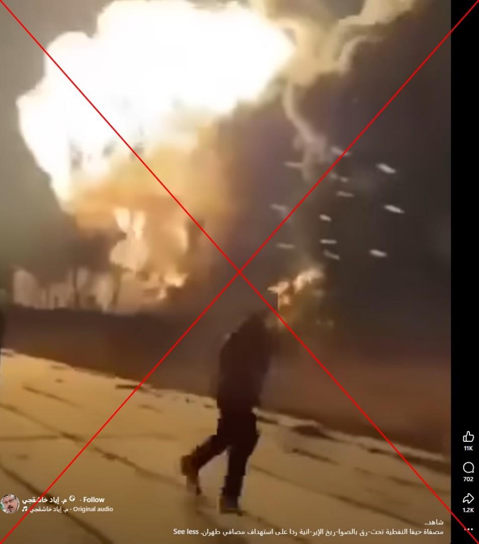 رداً على الضربات الأميركية الإسرائيلية، تواصل إيران شنّ هجمات واسعة النطاق استهدفت بنى تحتية للطاقة ومنشآت نفطية. في هذا الإطار تداول مستخدمون لمواقع التواصل الاجتماعي فيديو زعم ناشروه أنه لاحتراق مصفاة نفط في حيفا إثر هجوم إيراني. إلا أنّ الفيديو في الحقيقة يعود لحريق في مصفاة نفط روسية إثر هجومٍ عام 2025.