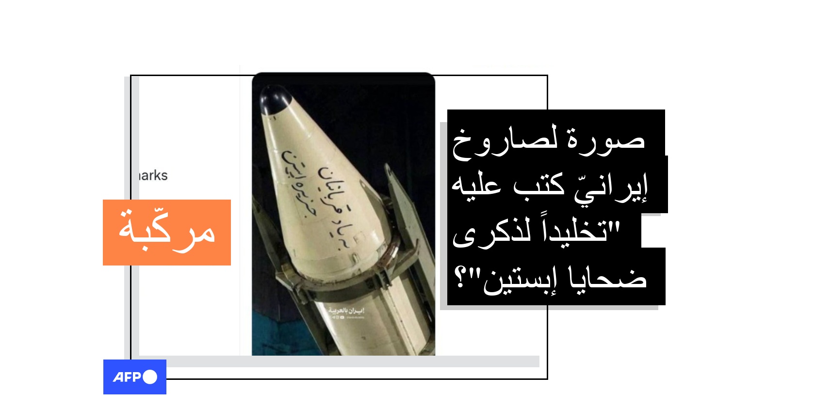هذه الصورة مركّبة وليست لصاروخٍ إيرانيّ كتب عليه "إهداء لضحايا إبستين"