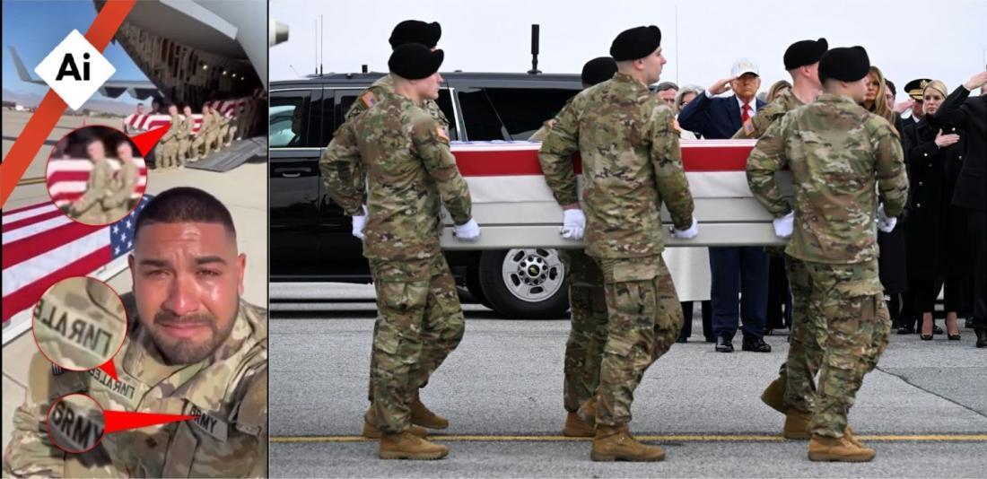 يُظهر الفيديو جندياً يبكي وفي الخلفيّة نعوش ملفوفة بالعلم الأميركي.