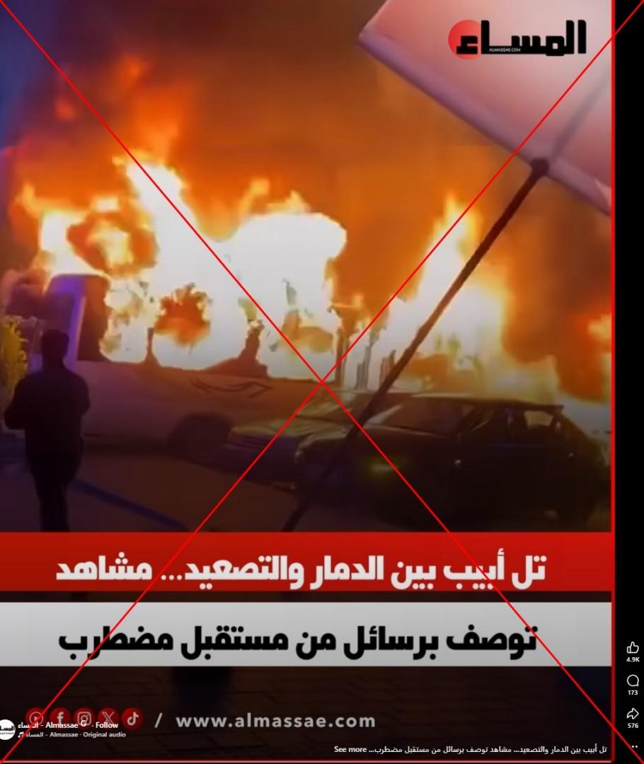 في ظلّ الهجمات الصاروخية الإيرانية المستمرة على إسرائيل منذ بدء الحرب الأميركية الإسرائيلية على الجمهورية الإسلامية، والتي ألحقت أضراراً في أبنية في وسط إسرائيل وشمالها. تداول مستخدمون لمواقع التواصل الاجتماعي فيديو ادّعى ناشروه أنه للأضرار في تل أبيب نتيجة سقوط صواريخ إيرانية. إلا أنّ هذا الفيديو في الحقيقة يعود لتظاهرات في طهران على خلفية تدهور الأوضاع المعيشية قبل اندلاع الحرب.