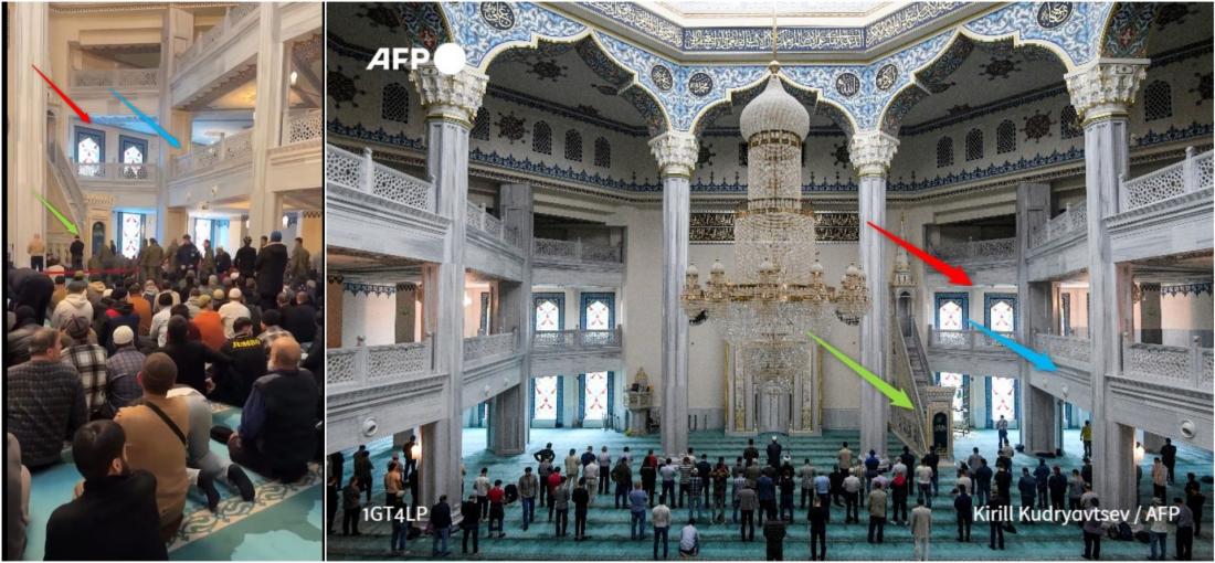 كما يظهر البحث عن المعالم البارزة للمكان عبر خدمة غوغل لنس تطابقاً مع مسجد موسكو الكبير (مسجد كاتدرائية موسكو) أحد أكبر مساجد أوروبا.