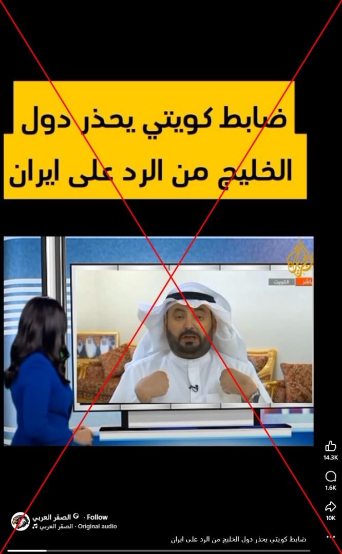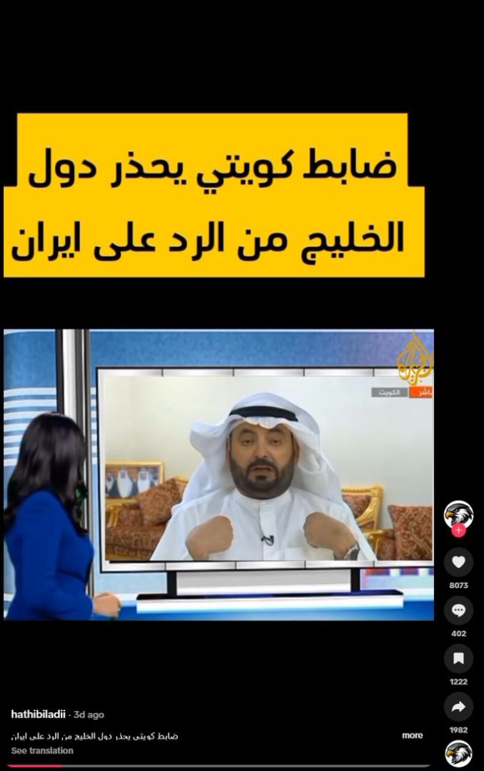 وجاء في التعليق المرافق "ضابط كويتي يحذّر دول الخليج من الرد على إيران".