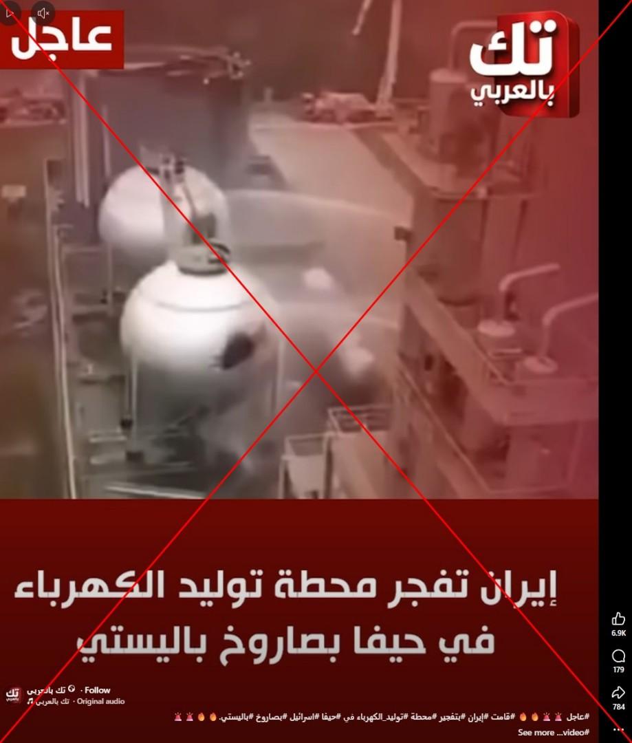 إلا أنّ الفيديو المتداول على أنه لاحتراق مصفاة نفط في حيفا إثر هجوم إيراني مصوّر في الحقيقة قبل أكثر من عشر سنوات في الصين.
