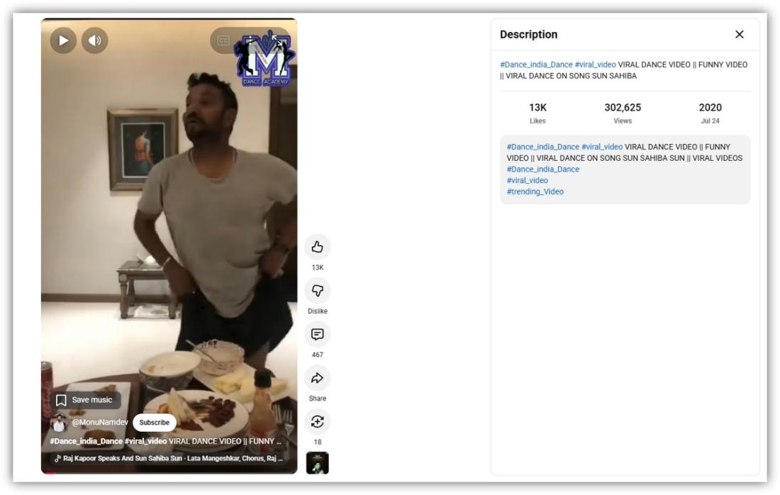 وجاء في تعليق مرافق لأحد هذه النسخ في موقع يوتيوب أنّ الرجل يرقص على أغنية "Sun Sahiba Sun" من فيلم "Ram Teri Ganga Maili" البوليوودي الصادر عام 1985. (أرشيف)