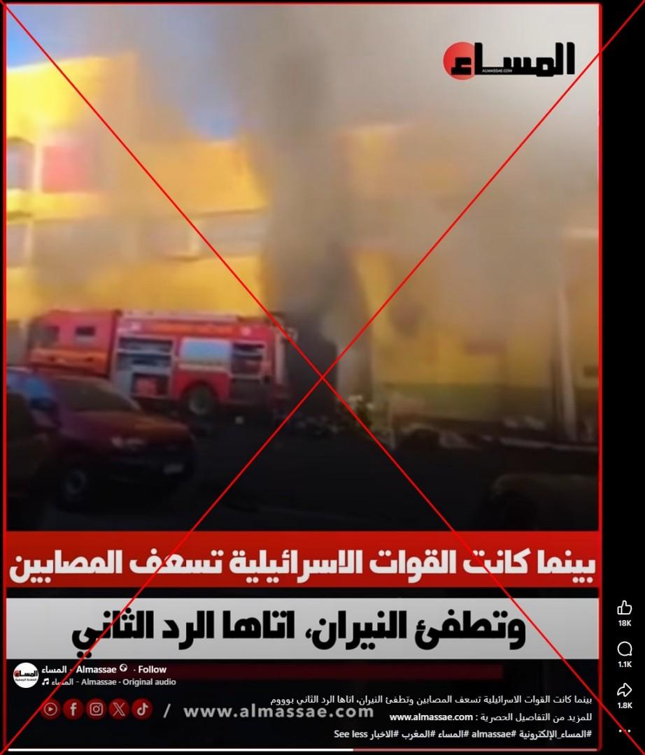 بعد أكثر من شهر على اندلاع الحرب الأميركية الإسرائيلية المشتركة على إيران، تتعرض إسرائيل لضربات إيرانية ألحقت أضراراً في منشآت وأبنية سكنيّة. في هذا السياق، تداول مستخدمون لمواقع التواصل الاجتماعي فيديو زعم ناشروه أنّه لاستهداف فرق إنقاذ في إسرائيل خلال إسعاف مصابين. إلا أن الفيديو في الحقيقة يظهر انفجاراً أعقب حريقاً داخل متجرٍ في البرازيل سنة 2025.