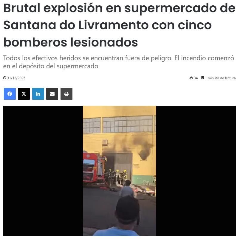 وآنذاك أفادت مواقع إخبارية برازيلية بوقوع انفجار عقب اندلاع حريقٍ داخل متجرٍ في مدينة سانتانا دو ليفرامينتو. (أرشيف)