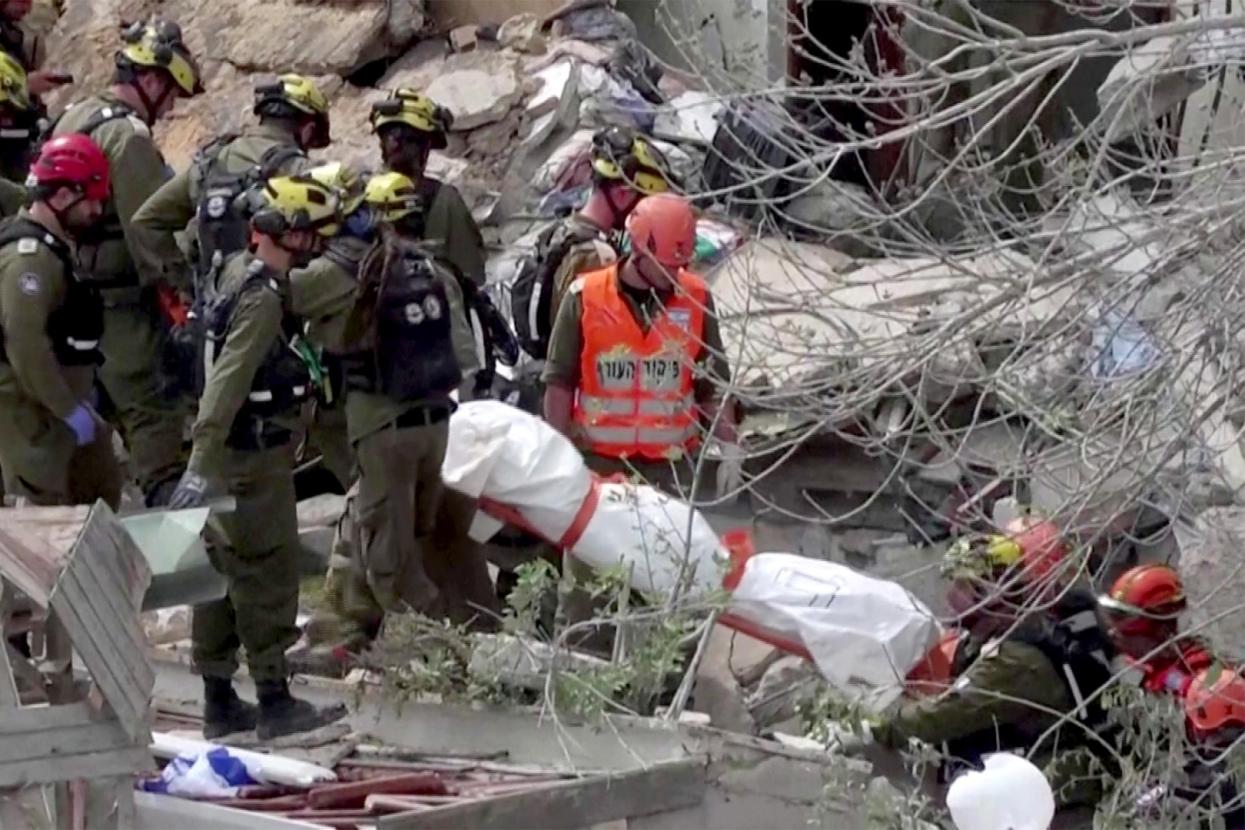 وانتشلت طواقم الدفاع المدني في مدينة حيفا في شمال إسرائيل قتيلين من تحت أنقاض مبنى أصابه صاروخ أطلق من إيران في 5 نيسان/أبريل، وفق ما أعلنت خدمة الإطفاء والإنقاذ.