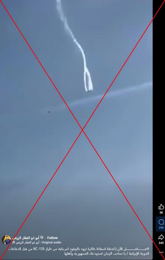 إلا أنّ الفيديو المتداول على أنه لإسقاط طائرة أميركيّة للتزود بالوقود في إيران لا علاقة له بالحرب في الشرق الأوسط.