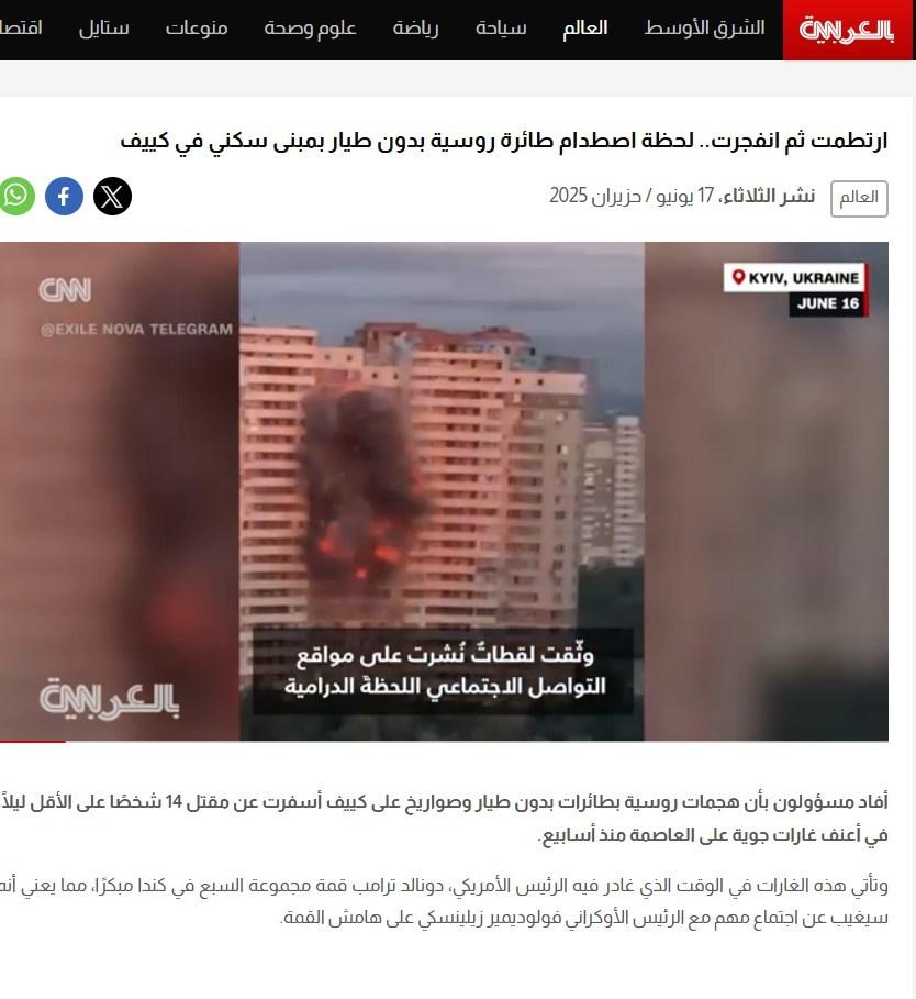 فقد أظهر البحث عن لقطات منه باستخدام محرك غوغل أنه منشور في مواقع إخبارية عدّة في حزيران/يونيو 2025، مع الإشارة إلى أنّه يعود لهجمات روسية بطائرات مسيّرة وصواريخ على العاصمة الأوكرانية كييف. (أرشيف 1-2-3)