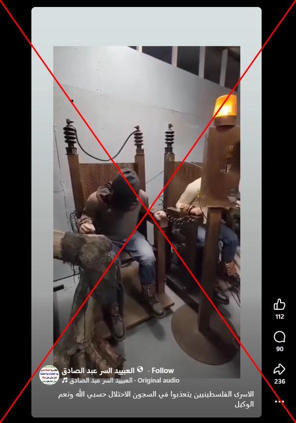 أثارت مصادقة الكنيست الإسرائيلي في 30 آذار/مارس على قانون يجيز فرض عقوبة الإعدام في الضفة الغربية المحتلة انتقادات حادة، إذ وصفتها دول أوروبية ومنظمات حقوقية بأنها تمييزية، فيما رأى فيها الفلسطينيون "جريمة حرب" بحقهم. في هذا السياق، تداول مستخدمون لمواقع التواصل الاجتماعي فيديو زعم ناشروه أنّه لتعذيب معتقلين فلسطينيين في السجون الإسرائيلية. إلا أنّ الفيديو في الحقيقة يظهر مجسّماً يستخدم في عروض الرعب.