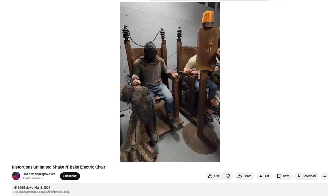 فقد أرشد التفتيش إلى الفيديو نفسه منشوراً قبل سنوات مرفقاً بتعليق يشير إلى أنّه لمجسّم كرسي كهربائيّ يعرضه متجر Distortions Unlimited. (أرشيف)