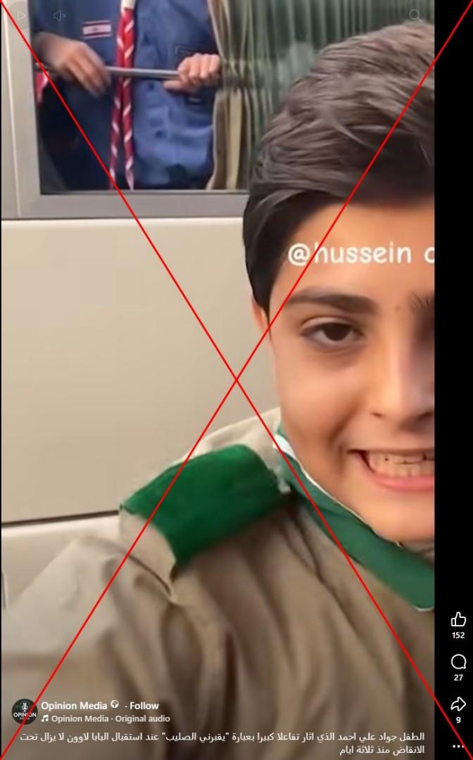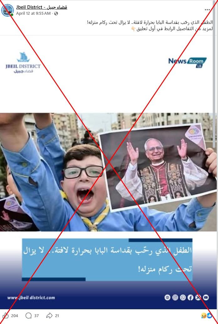 خلال استقبال البابا لاوون الرابع عشر في بيروت قبل أشهر، لفتت الأنظار صورة التقطها مصوّر وكالة فرانس برس تظهر طفلاً من هيئة كشفيّة تابعة لحزب الله يرفع صورة البابا قبيل مرور موكبه وفيديو لزميلٍ له يهتف بحماسة. عادت هذه المشاهد إلى التداول، عقب الضربات التي نفذتها إسرائيل بشكل متزامن على مناطق عدّة في لبنان في الثامن من نيسان/أبريل، ضمن منشورات تزعم أنّ الطفلين كانا في عداد أكثر من 300 شخصٍ، بينهم 30 طفلاً، قتلوا يومها. إلا أنّهما في الحقيقة على قيد الحياة ولم يتعرّض أيّ منهما لأذى كما أكّد أفراد من عائلتيهما لوكالة فرانس برس.