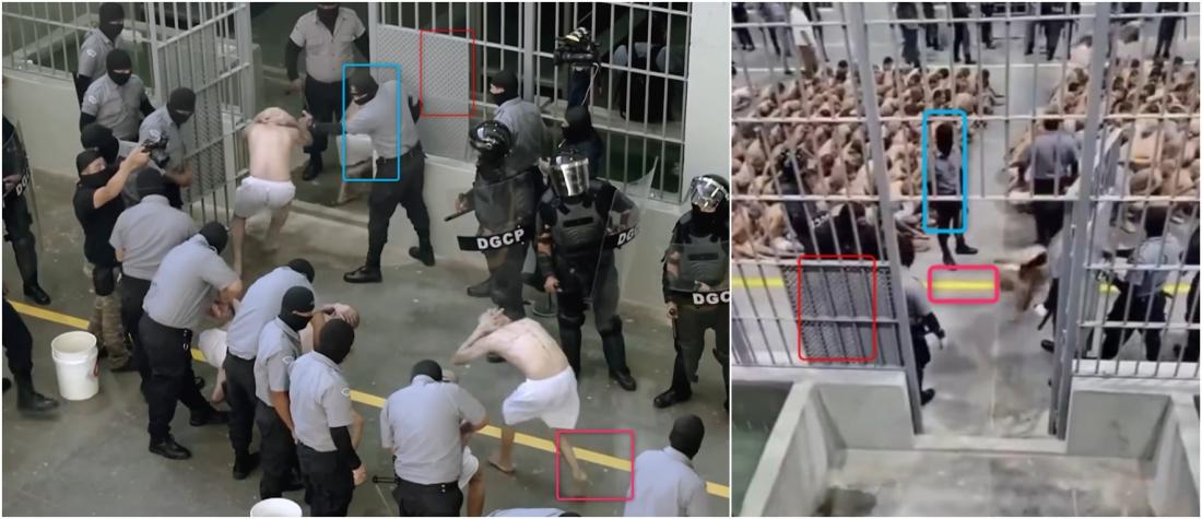 ويمكن العثور على لقطات من زاوية أخرى تُظهر العناصر نفسها ضمن وثائقيّ لقناة "ديسكافري" عن سجن تيكولوكو في السلفادور نُشر على موقع يوتيوب في شباط/فبراير 2025. (أرشيف)