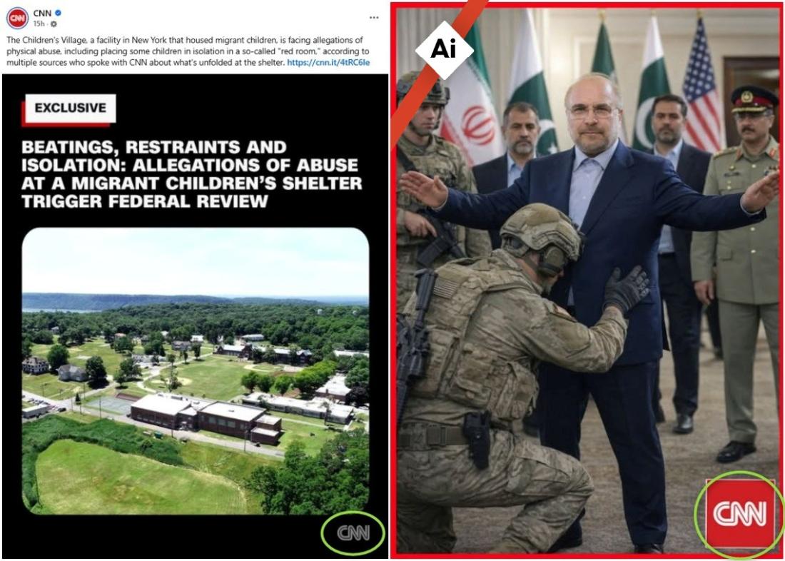 إلا أن الصورة المتداولة على أنّها لقاليباف أثناء خضوعه للتفتيش من المارينز، مولّدة باستخدام الذكاء الاصطناعي.