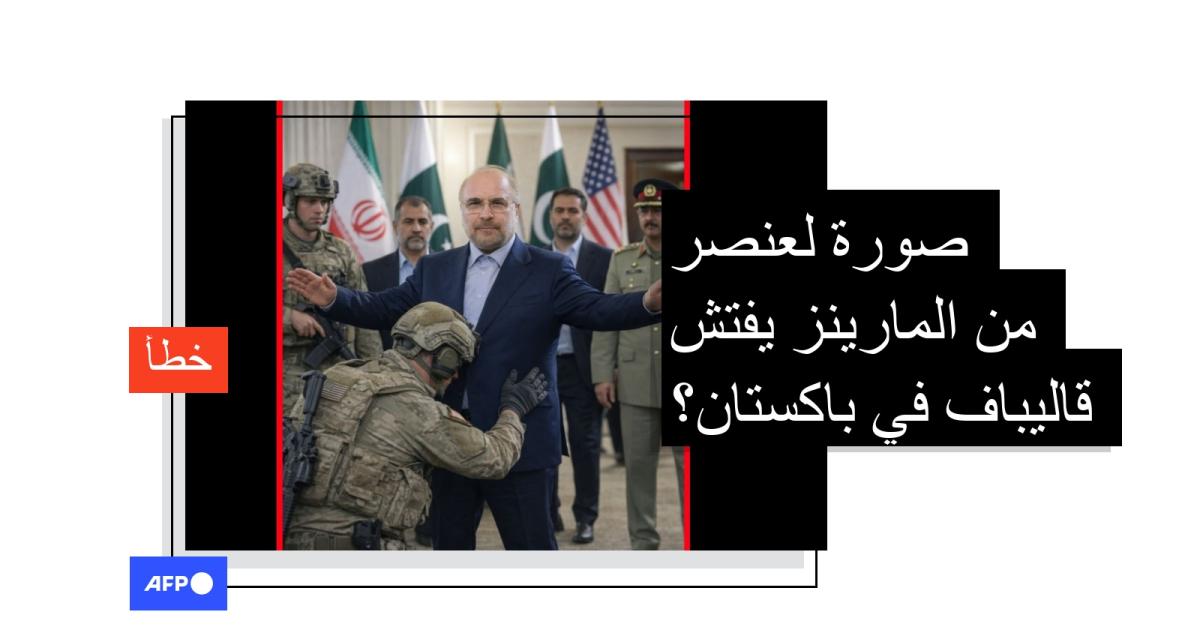 فرض رئيس مجلس الشورى الإيراني محمد باقر قاليباف نفسه مفاوضاً رئيسياً والوجه الرسمي الأبرز في الجمهورية الإسلامية خلال محادثات السلام بين بلاده والولايات المتحدة في باكستان. في هذا الإطار، تداول مستخدمون لمواقع التواصل الاجتماعي صورة زعم ناشروها أنها تُظهر عنصراً من مشاة البحرية الأميركية (المارينز) وهو يفتّش قاليباف قبل دخوله قاعة المفاوضات في إسلام آباد. إلا أن الصورة في الحقيقة مولّدة باستخدام الذكاء الاصطناعي.