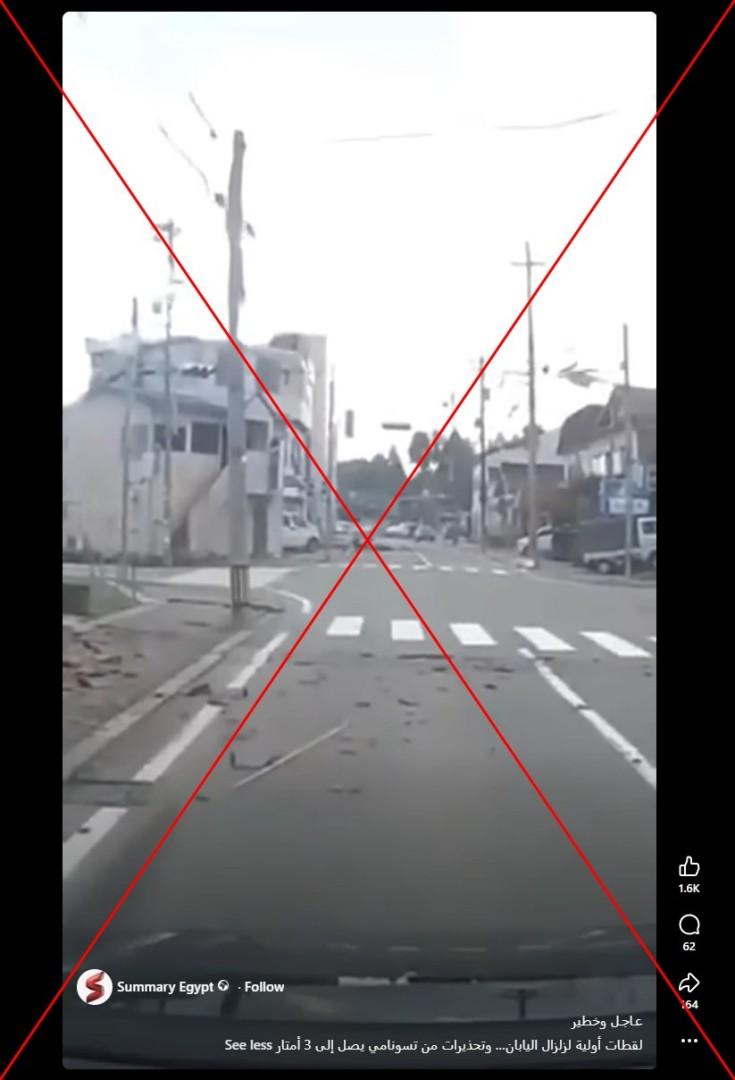 إلا أنّ المشاهد المتداولة ليست من الزلزال الذي وقع اليوم في اليابان.