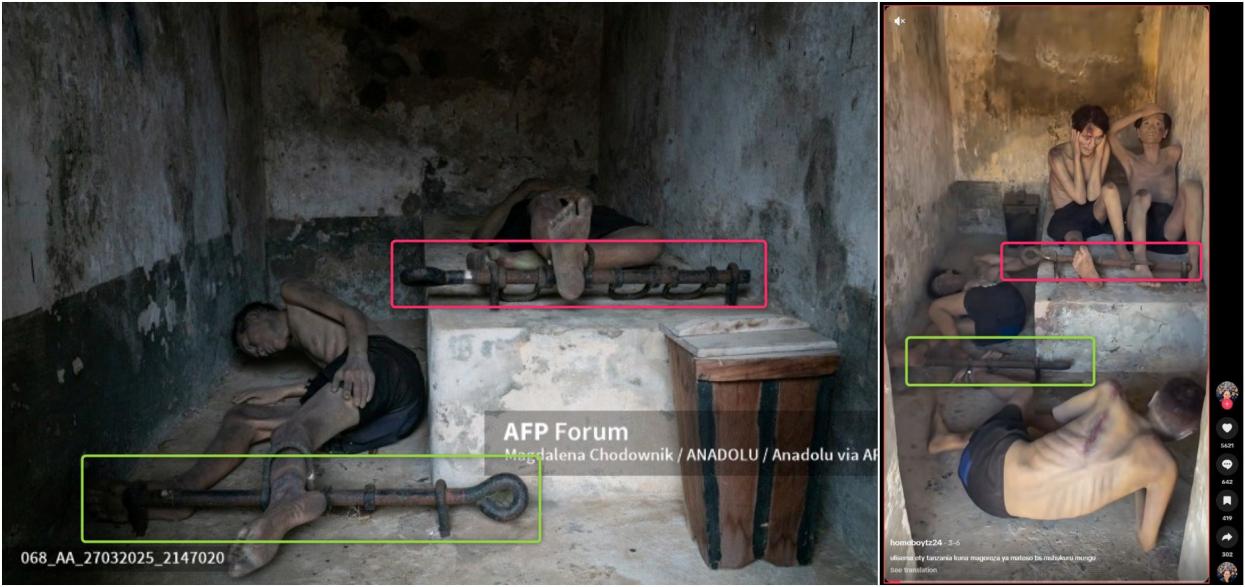 كما يمكن مطابقة عناصر الفيديو مع صورٍ وزعتها وكالة فرانس برس من داخل السجن.