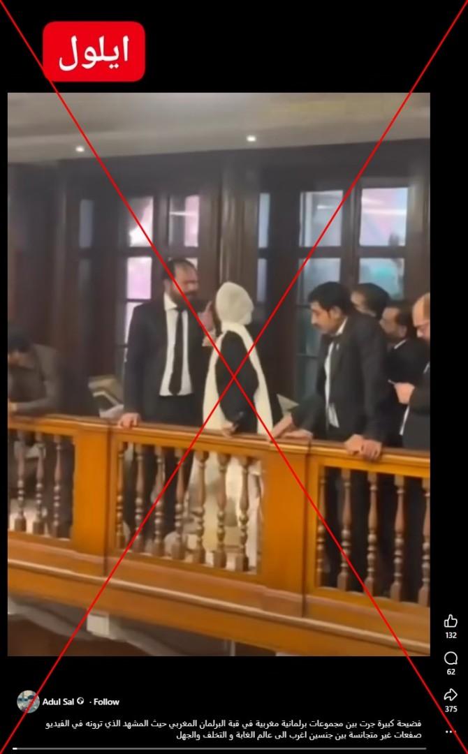كذلك، انتشر المقطع في سياق مضلّل مشابه، مرفقاً بمزاعم أنه يُظهر شجاراً في البرلمان المغربي.