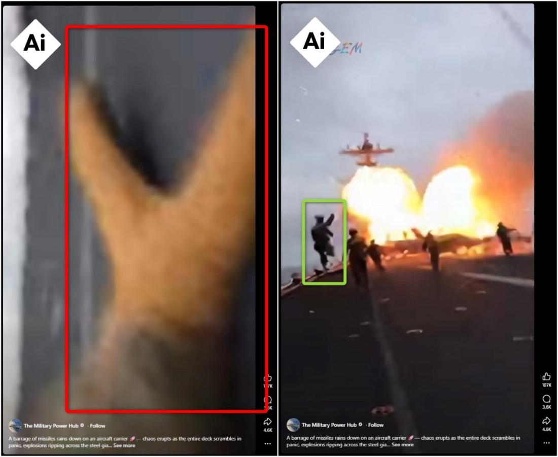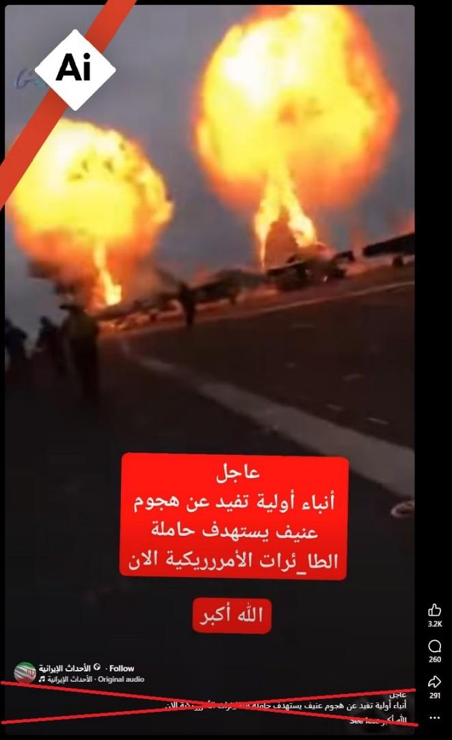 هذا الفيديو مولّد باستخدام الذكاء الاصطناعي وليس لاستهداف حاملة طائرات أميركية