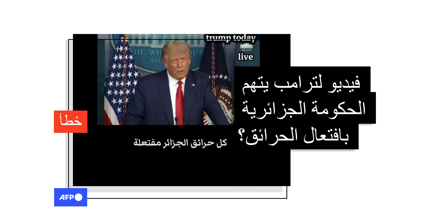 هذا الفيديو مركّب ولا يُظهر ترامب يتهمّ الحكومة الجزائرية بافتعال الحرائق الأخيرة في البلاد تاريخ النشر 20 نوفمبر 2025 الساعة 12:06
